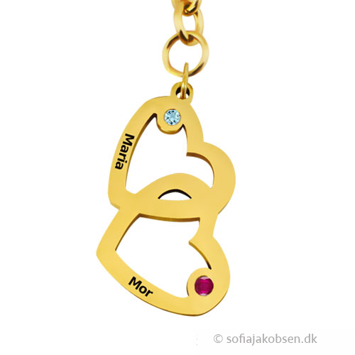 Guldbelagt Indgraveret Vertikal Hjerte-i-Hjerte nøglering